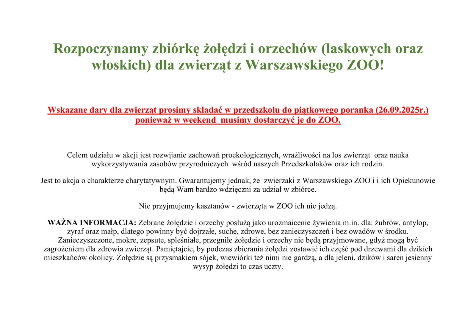 Zbiórka żołędzi i kasztanów dla Warszawskiego Zoo