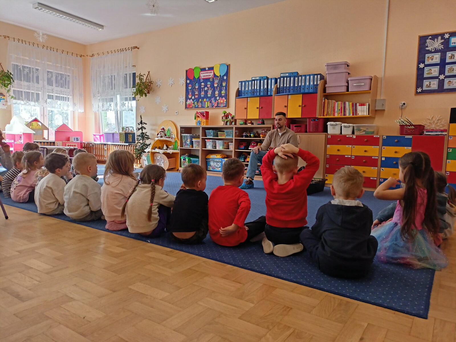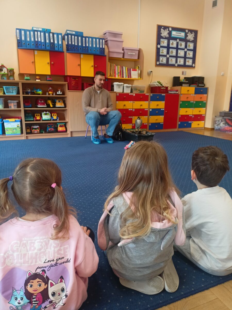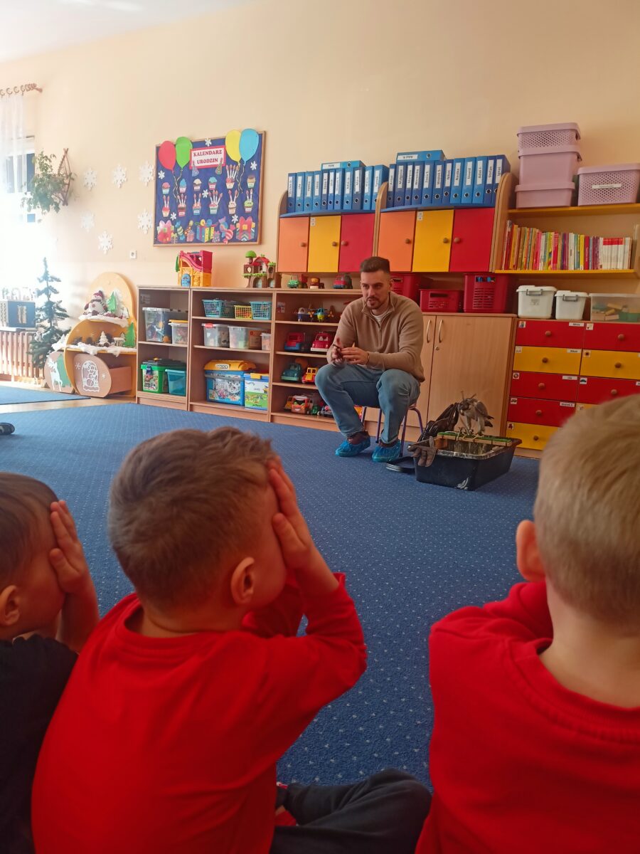 2 marca do naszego przedszkola zawitał gość specjalny, a mianowicie sokół wędrowny o imieniu Piorun- najszybsze zwierzę na świecie. Warsztaty dostarczyły dzieciom niezapomnianych emocji, a także były okazją do zdobycia unikalnej wiedzy na temat życia ptaków drapieżnych. Dzieci miały możliwość pogłaskania sokoła oraz zobaczenia akcesoriów takich jak kaptur czy rękawica.