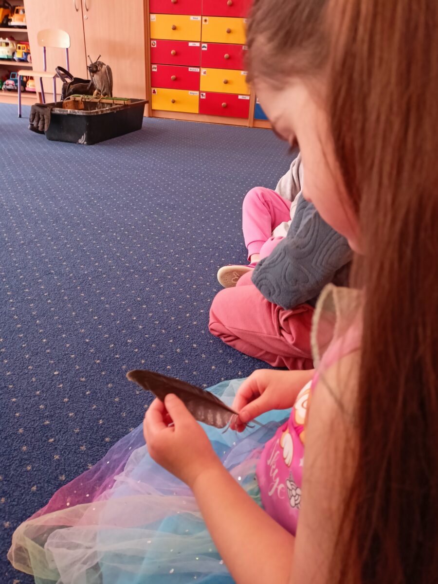 „Kropelki” zapoznały się również z ciekawostkami dotyczącymi pracy sokolnika.