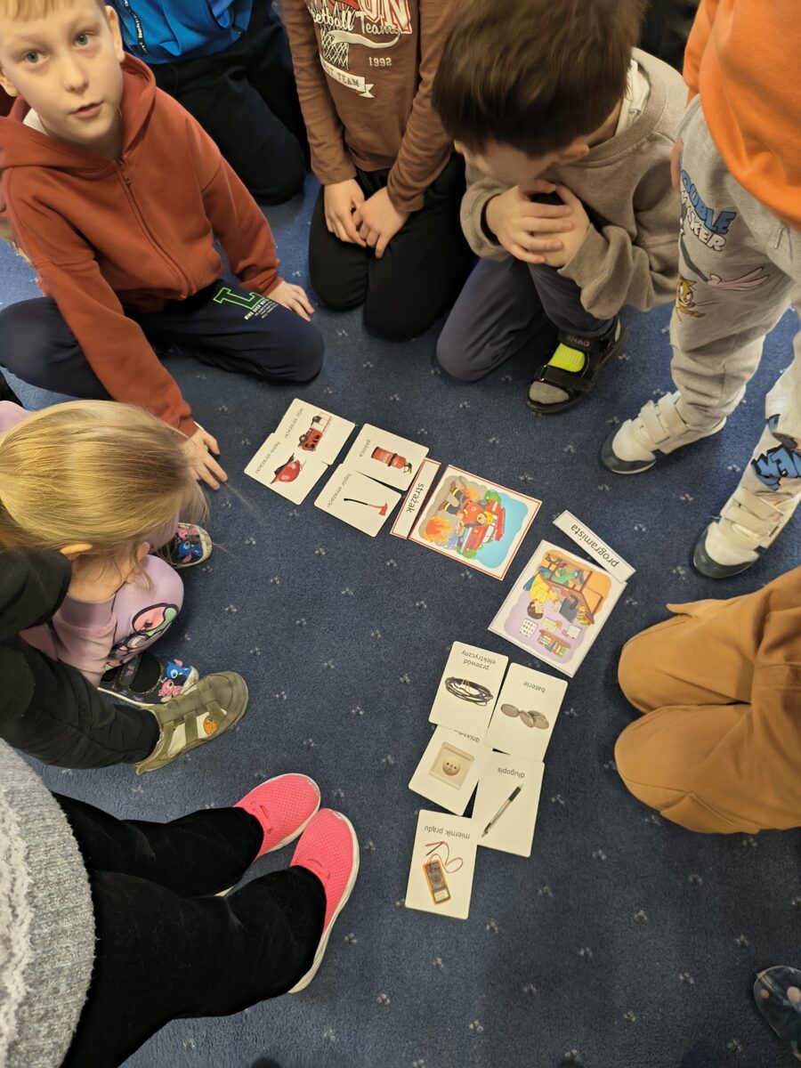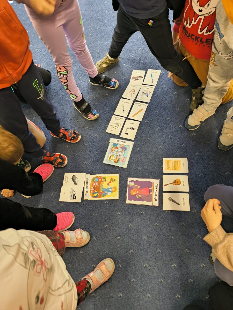 Podczas zajęć tematycznych dzieci z grupy Rybki poznawały różne zawody i dowiadywały się, na czym polega praca dorosłych. Przedszkolaki z ciekawością oglądały rekwizyty, rozmawiały o obowiązkach w poszczególnych profesjach oraz brały udział w zabawach tematycznych. Zajęcia były okazją do rozwijania wyobraźni, poszerzania wiedzy i świetnej zabawy