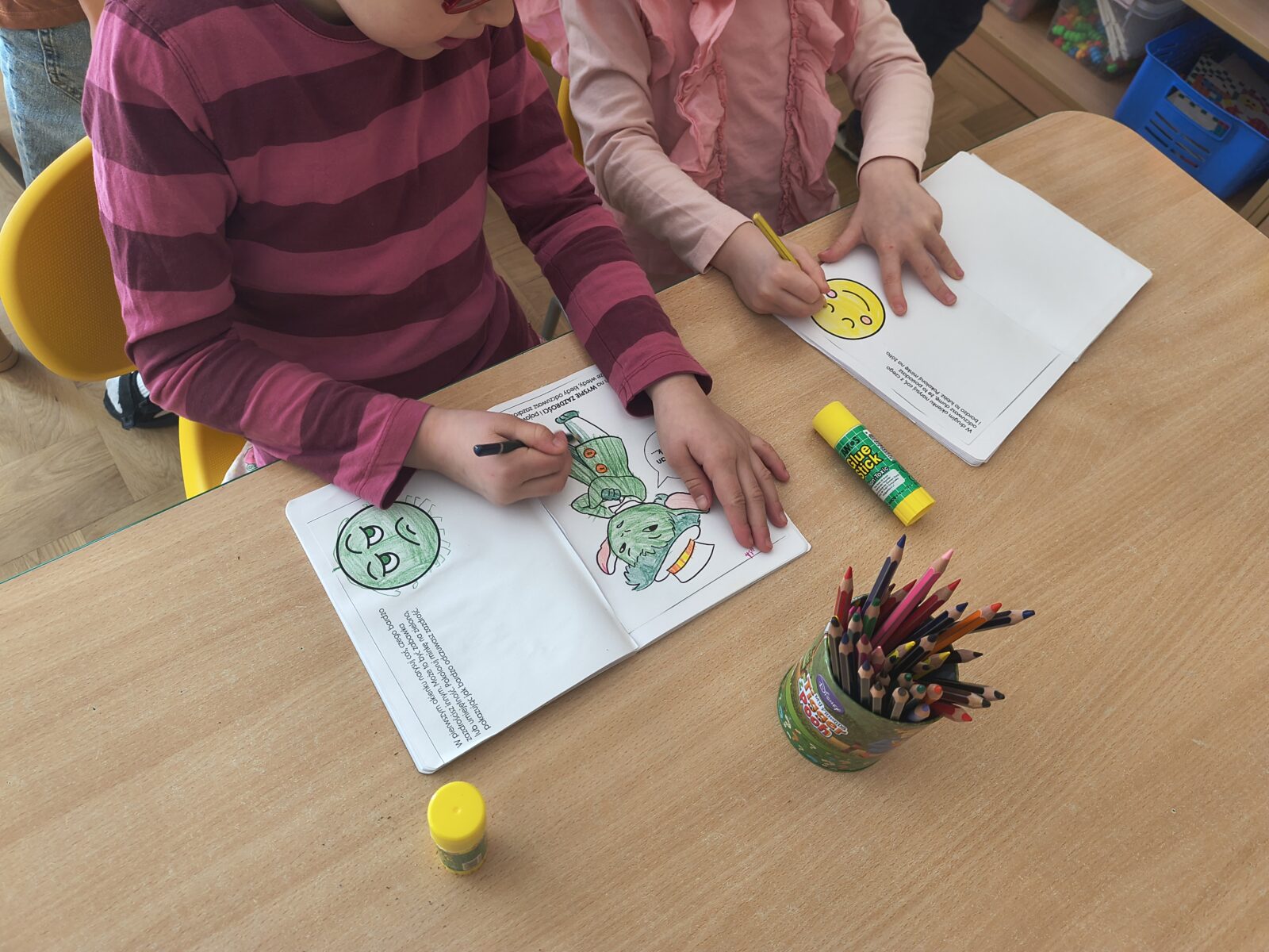 Spotkanie było także okazją do rozwijania empatii, budowania pozytywnych relacji w grupie oraz uczenia się, jak w spokojny i bezpieczny sposób wyrażać swoje emocje. Dzieci z dużym zaangażowaniem brały udział w proponowanych aktywnościach i chętnie dzieliły się swoimi spostrzeżeniami.