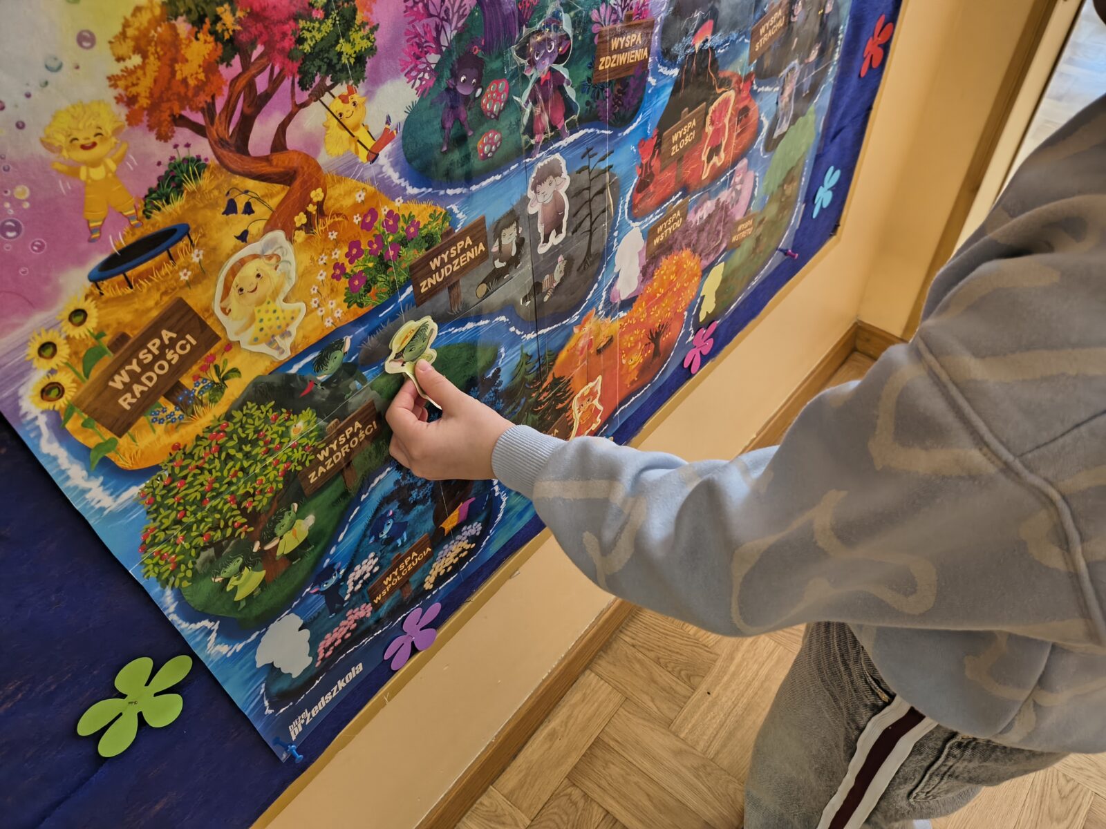 Podczas zajęć dzieci wspólnie zastanawiały się, jakie emocje mogą towarzyszyć nam na co dzień oraz w jaki sposób możemy je rozpoznawać i nazywać. Rybki uczestniczyły w rozmowach, zabawach i zadaniach, które pomagały im lepiej zrozumieć swoje uczucia oraz uczucia innych osób.