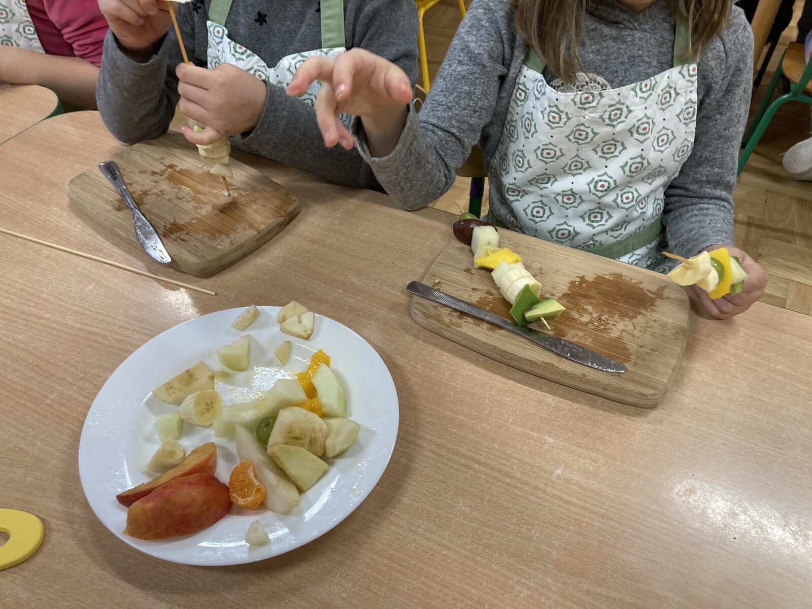 Podczas zajęć dydaktycznych przedszkolaki z grupy Rybek poznawały zasady zdrowego stylu życia i odżywiania. Rozmawiały o tym, co sprzyja zdrowiu człowieka, a także co może mu szkodzić. Miały okazję samodzielnie wykonać kolorowe szaszłyki owocowe, które następnie ze smakiem zjadły. Była to wspaniała okazja do utrwalenia wiedzy o zdrowiu oraz rozwijania samodzielności i nawyków zdrowego odżywiania.