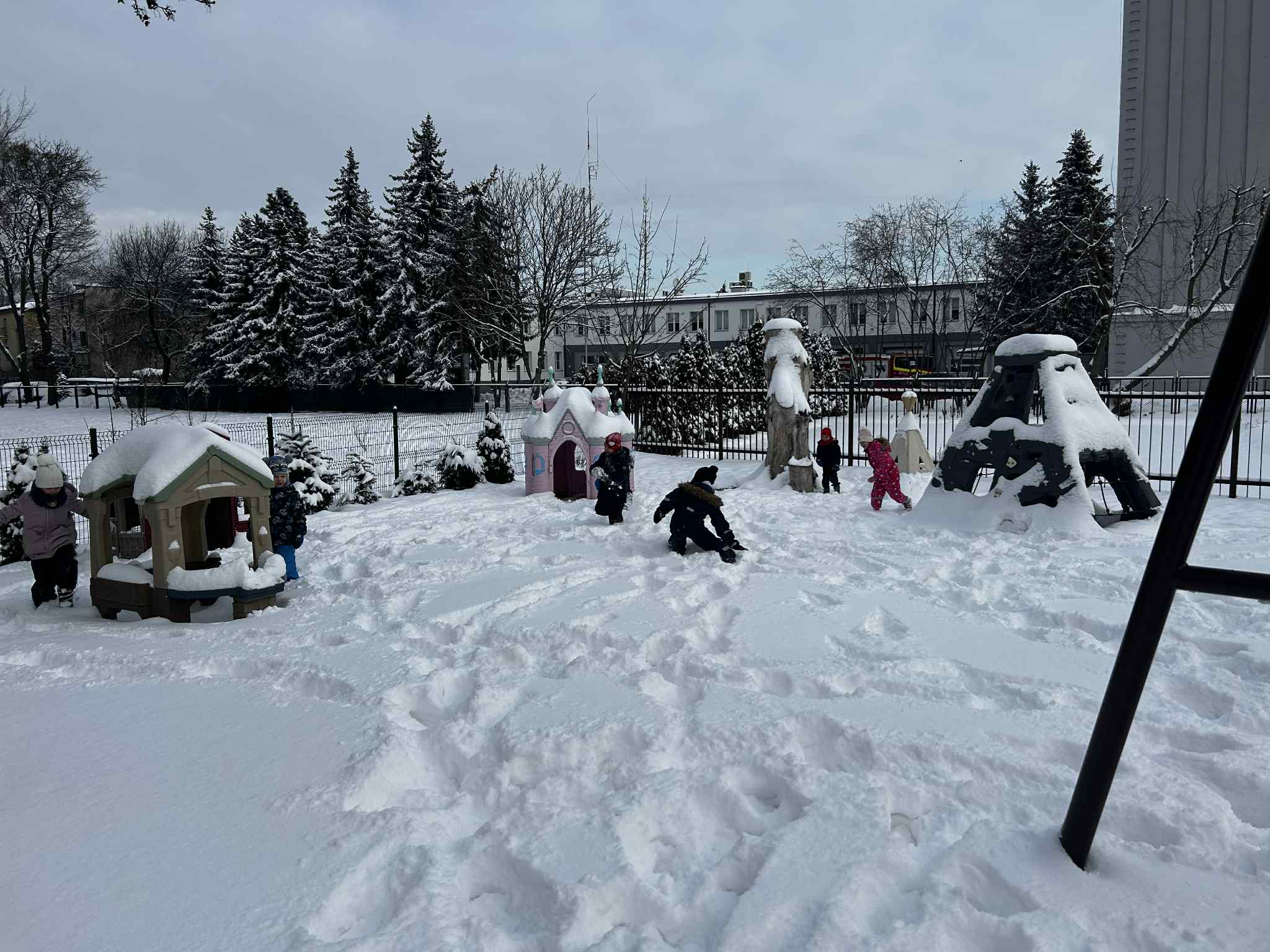 Zabawy na śniegu – Dzieci korzystają z uroków zimy podczas wyjścia do przedszkolnego ogrodu. Podczas zabaw na śniegu dzieci ćwiczyły motorykę małą i dużą, refleks oraz współpracę m.in. przy budowaniu śnieżnych budowli oraz bitwie na śnieżki. Wyjścia na dwór podczas zimowej aury zawsze wywołują u dzieci dużo radości.