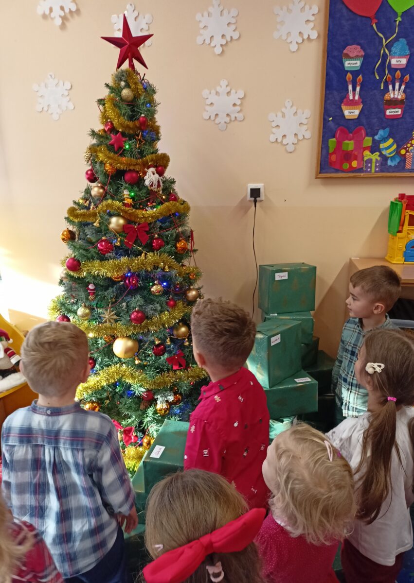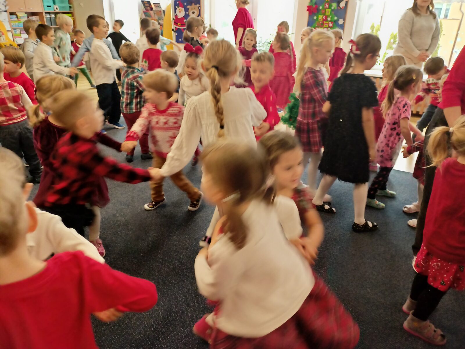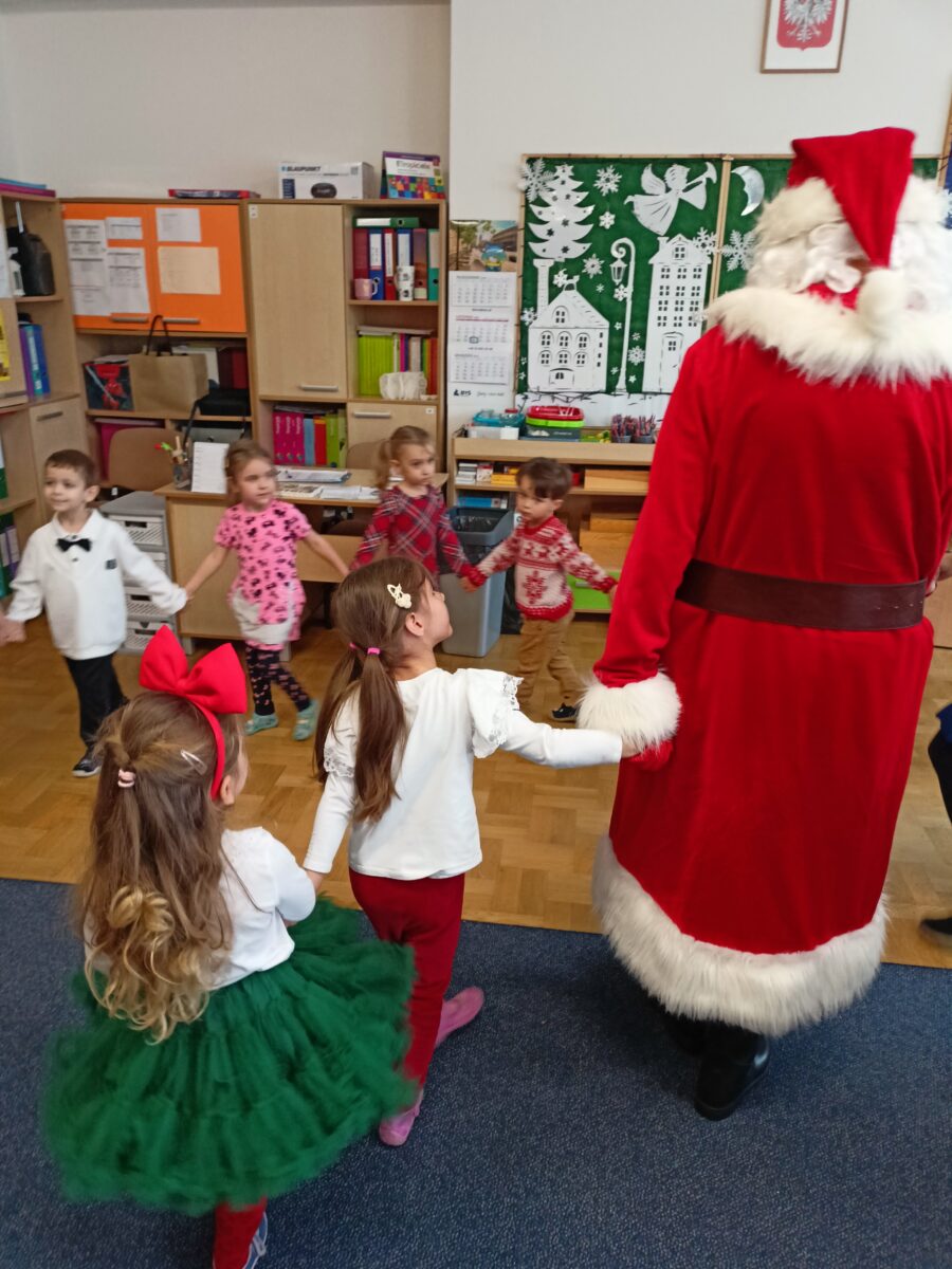 W dniu Mikołajek nasze przedszkolaki zamieniły się w pomocników Mikołaja i przyszły do przedszkola ubrane na czerwono. Już od rana zastanawiały się czy Mikołaj odwiedzi ich salę i czy przyniesie prezenty. Po przyjściu Mikołaja dzieci przywitały się z niezwykłym gościem i zaprezentowały piosenkę przygotowaną specjalnie dla Niego.